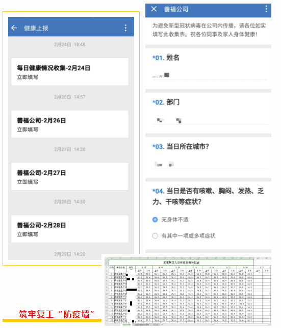“復(fù)工任務(wù)雖急,人員安全更重,必須把好人員進(jìn)場(chǎng)第一關(guān)?!痹谌藛T進(jìn)場(chǎng)管控上,武重集團(tuán)建立了這樣一條“硬核規(guī)定”:?jiǎn)T工必須每天通過(guò)企業(yè)微信提交體溫信息,建立員工健康檔案,筑牢復(fù)工“防疫墻”。