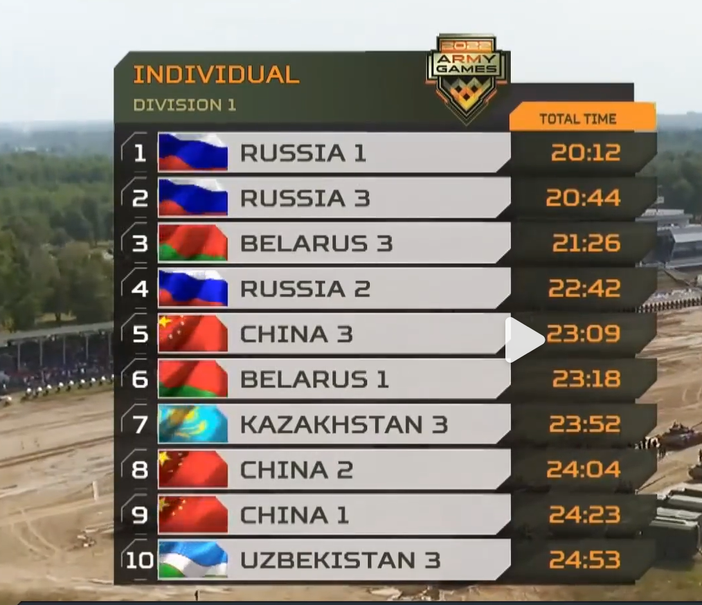 8月21日,“國際軍事比賽-2022”“蘇沃洛夫突擊”項目接力賽開賽。中國、俄羅斯、白俄羅斯、伊朗4國參賽隊展開巔峰對決。最終,中國參賽隊取得比賽第一名,并創造該項目歷史最好成績,白俄羅斯、俄羅斯分列第二、三名。