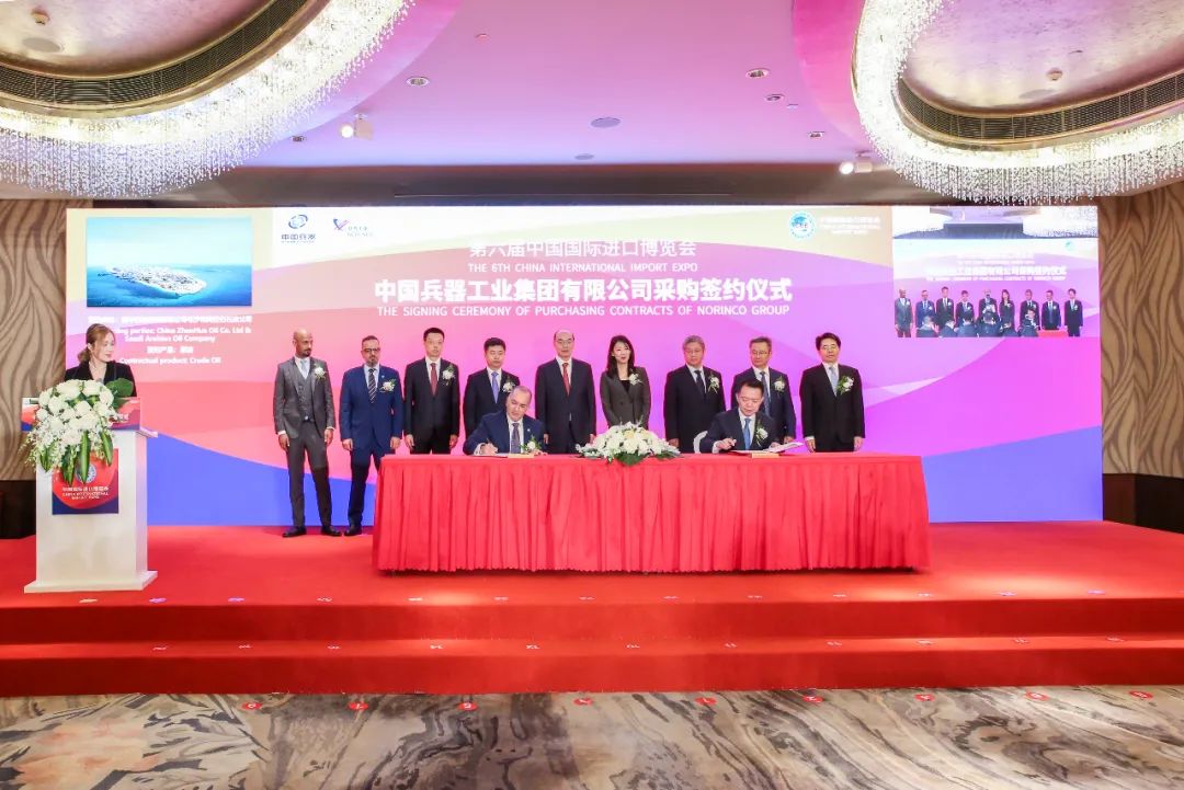 11月6日,中國兵器工業集團有限公司在上海隆重舉辦第六屆中國國際進口博覽會專場采購簽約儀式。兵器工業集團黨組成員、副總經理植玉林,商務部有關司局領導,來自蒙古、盧森堡、法國、智利、瑞士、新加坡、韓國、美國、德國、沙特、伊拉克等國知名企業簽約代表,總部相關部門、相關子集團和直管單位負責人共150多人出席簽約儀式。